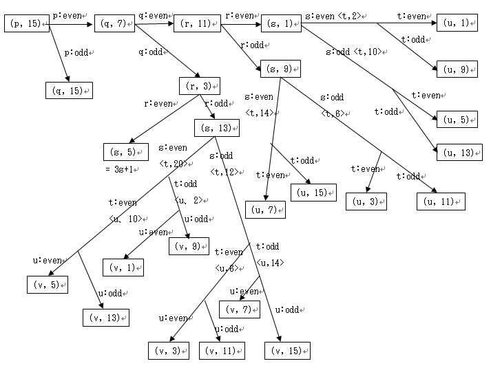 if r is odd,<r、14>=<r-1、30>→(s、15)