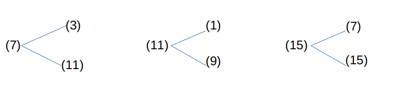 3<7, 13> + 1 = <21, 40> = <22, 24> → <11, 12> = <10, 28> → <5, 14> = <4, 30> → <2, 15>