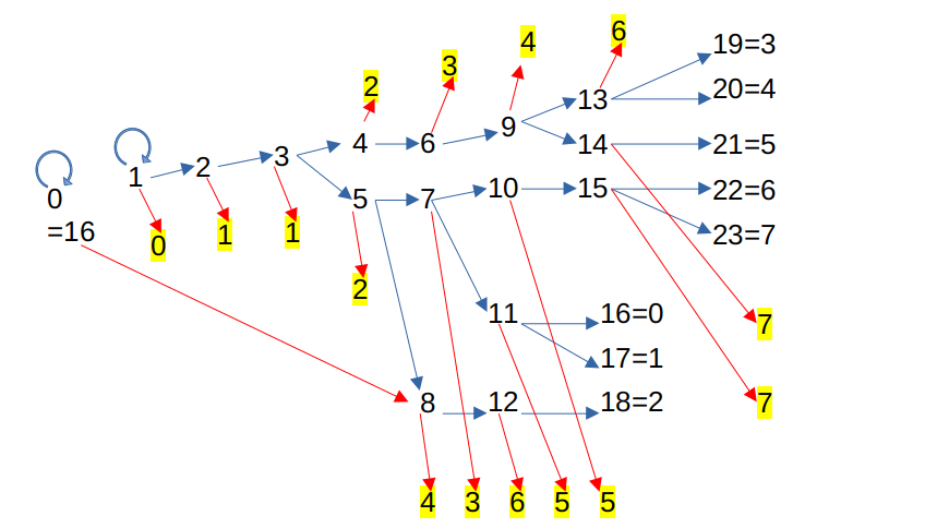 3<1, 13> + 1 = <3, 40> = <4, 24> → <1, 6> = <0, 22> → <0, 11>
