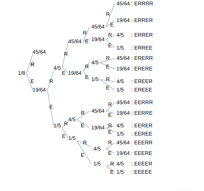 Reduction ratio:45/64 + (19/64 x 4/5 x 45/64 x 45/64 x 45/64 + 19/64 x 4/5 x 45/64 x 45/64 x 19/64) + 19/64 x 4/5 x 45/64 x 19/64 x 4/5 + 19/64 x 4/5 x 19/64 x 4/5 x 45/64 + 19/64 x 1/5 x 4/5 x 45/64 x 45/64 = 45/64 + 19/64 x 4/5 x 45/64 x 45/64 + 19/64 x 4/5 x 45/64 x 19/64 x 4/5 + 19/64 x 4/5 x 19/64 x 4/5 x 45/64 + 19/64 x 1/5 x 4/5 x 45/64 x 45/64 = 0.703125 + 19x4x452/643x5 + (42x192x45 + 42x192x45 + 4x19x452)/52x643 = 0.703125 + 0.123097 + 0.102804 = 0.929026