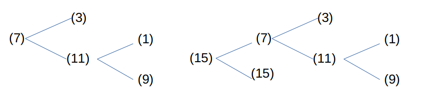 (7)(11)(1)(1)(1)と、(7)(11)(1)(1)(9)についてはまだ拡張している。次に、タイプ1は、(1)|(9)|(5)|(13)に分岐し、タイプ9は(7)|(15)|(3)|(11)に分岐している。このことを考慮すると次のようになる。